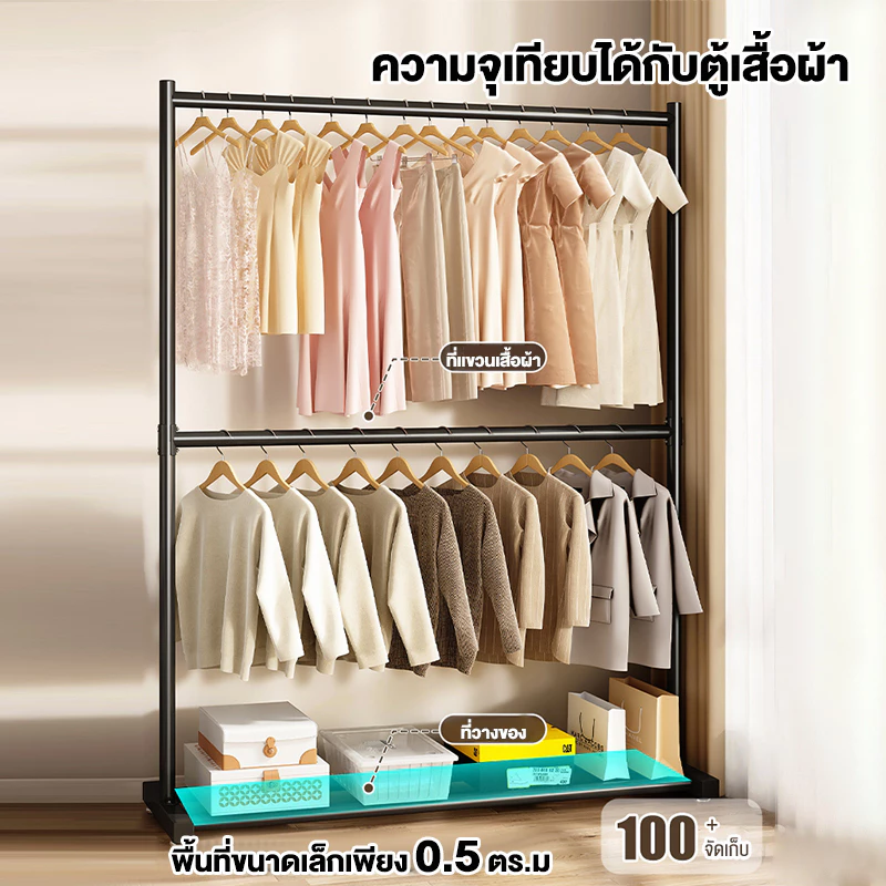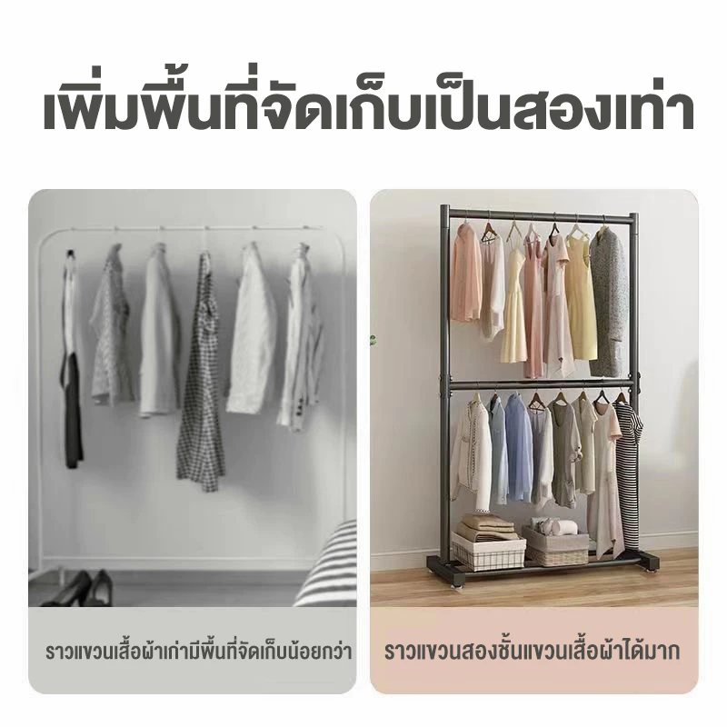 ?โครงเหล็กเเข็งเเรง เเขวนได้ถึง 2 ชั้น เเขวนได้มากกว่า 55 ตัว++ เเขวนเสื้อผ้า กางเกง