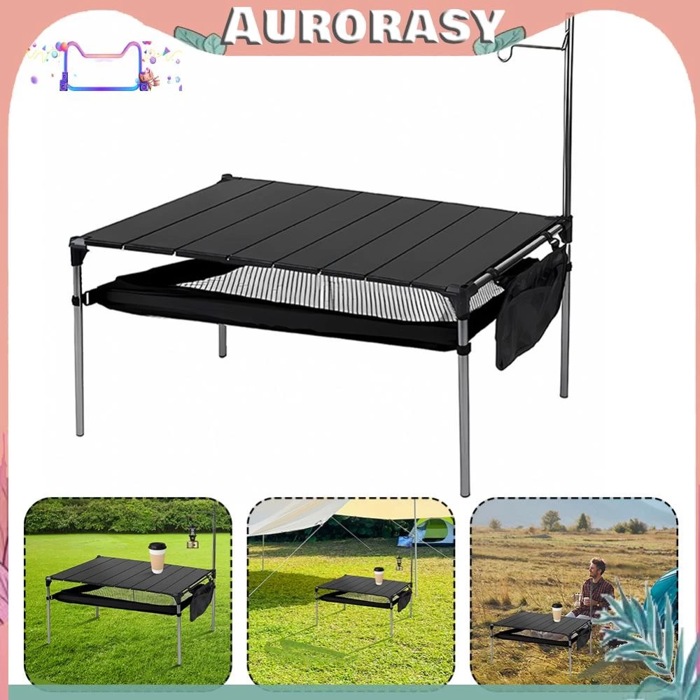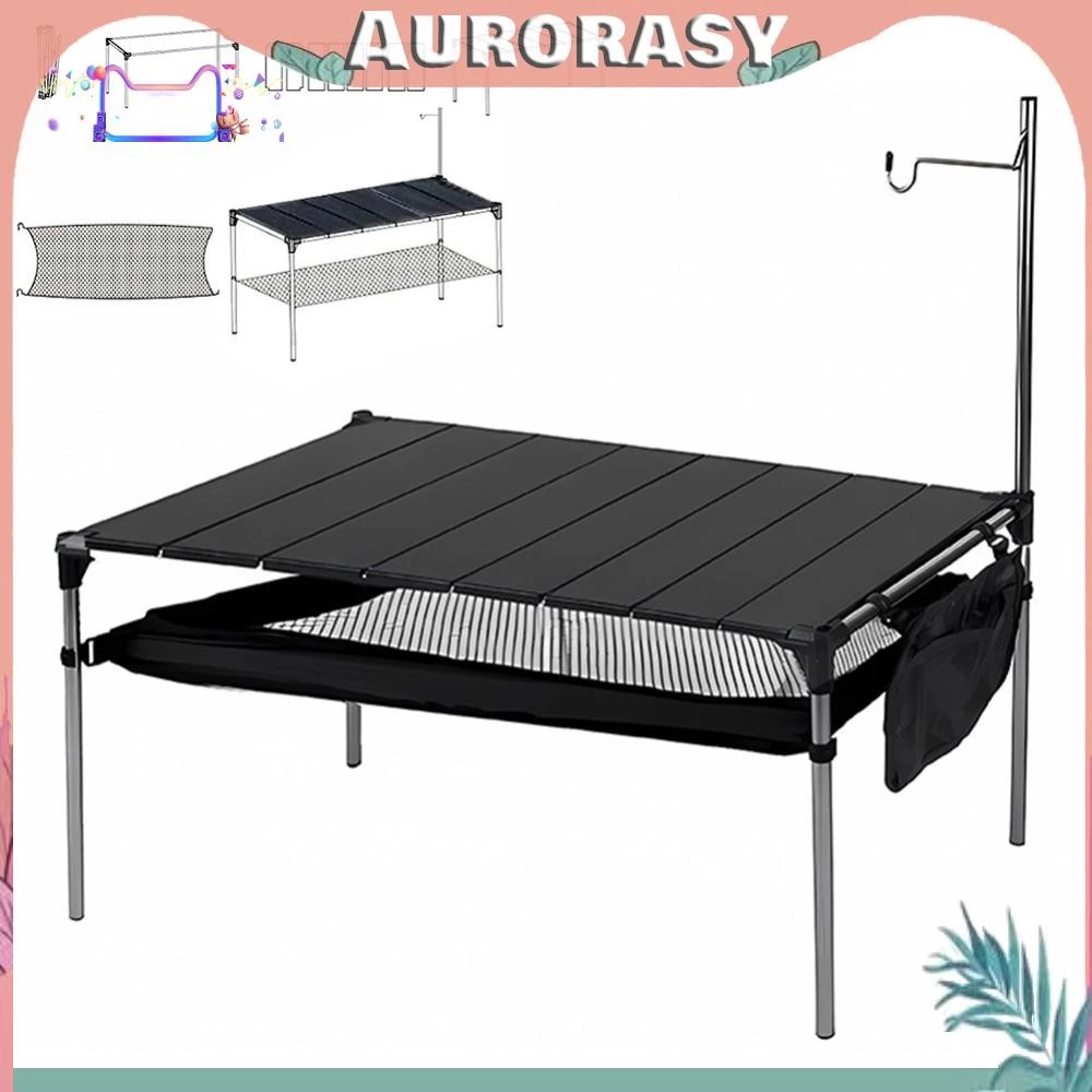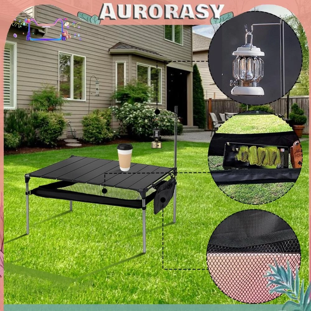 โต๊ะปิคนิคพับได้พร้อมที่เก็บขนาดใหญ่โต๊ะปิคนิคอลูมิเนียมแคมป์ปิ้งโต๊ะพับได้พร้อมที่เก็บของขนาดใหญ่โต๊ะชายหาดขนาดกะทัดรัดพับได้พร้อมเสาไฟน้ำหนักเบาโต๊ะปิคนิคบาร์บีคิวมัลติฟังก์ชั่นสำหรับงานปาร์ตี้เดินป่าในสวนหลังบ้าน
